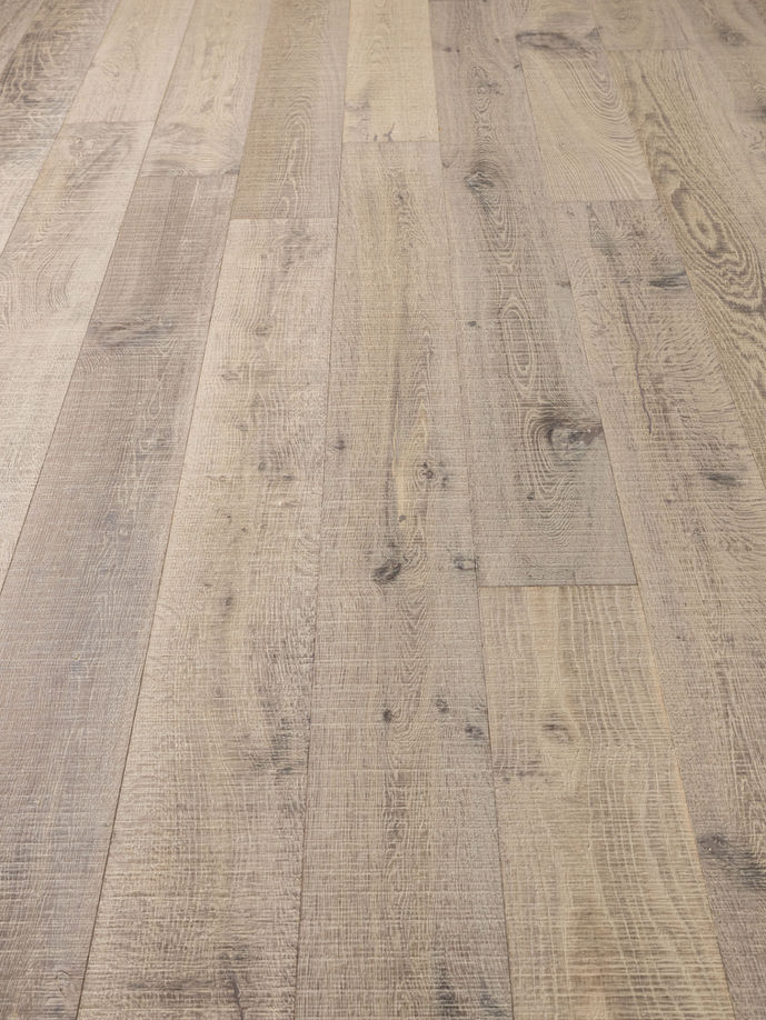 Aurora showcases European Oak in a light, sun-washed beige with hints of gray, echoing the look of naturally weathered wood. Its rustic grade and wire-brushed surface bring out authentic knots and textures, creating a raw yet inviting character. Perfect for bright, open spaces, Aurora balances a casual warmth with a grounded, lived-in feel.